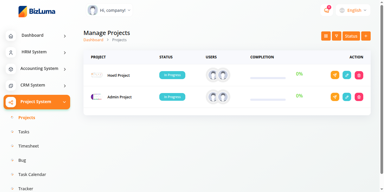 Start Free TrialDive deeper into Bizluma’s ecosystem and uncover new ways to optimize workflows, manage projects, and grow your business. With Project, Account, HRM, CRM